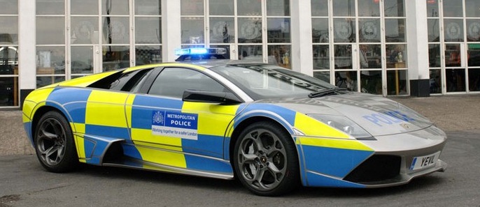 Lamborghini Gallardo This beauty was donated by Lamborghini to the Italian Police last 2004. Its top speed is 190 mph and is powered by a 5 liter V10 with 500 hp. Italian Police actually purchased another one costing $166,000 after a year.